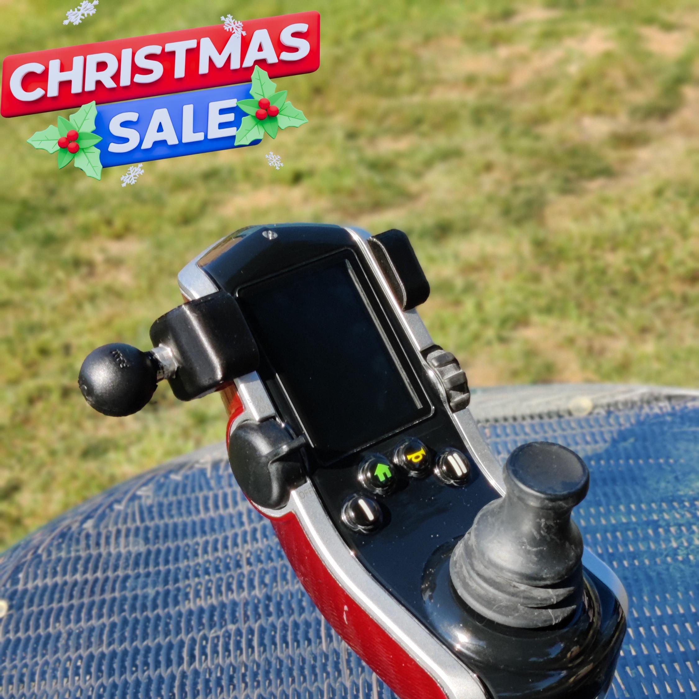 This 3D-printed adapter allows you to mount your phone or other similar small electronics onto your joystick. This mount option allows for a different phone placement location, unlike other wheelchair phone mounts. A genuine 1" inch RAM ball mount will be preinstalled onto the 3D printed base so you can simply attach your RAM or other third-party arms.