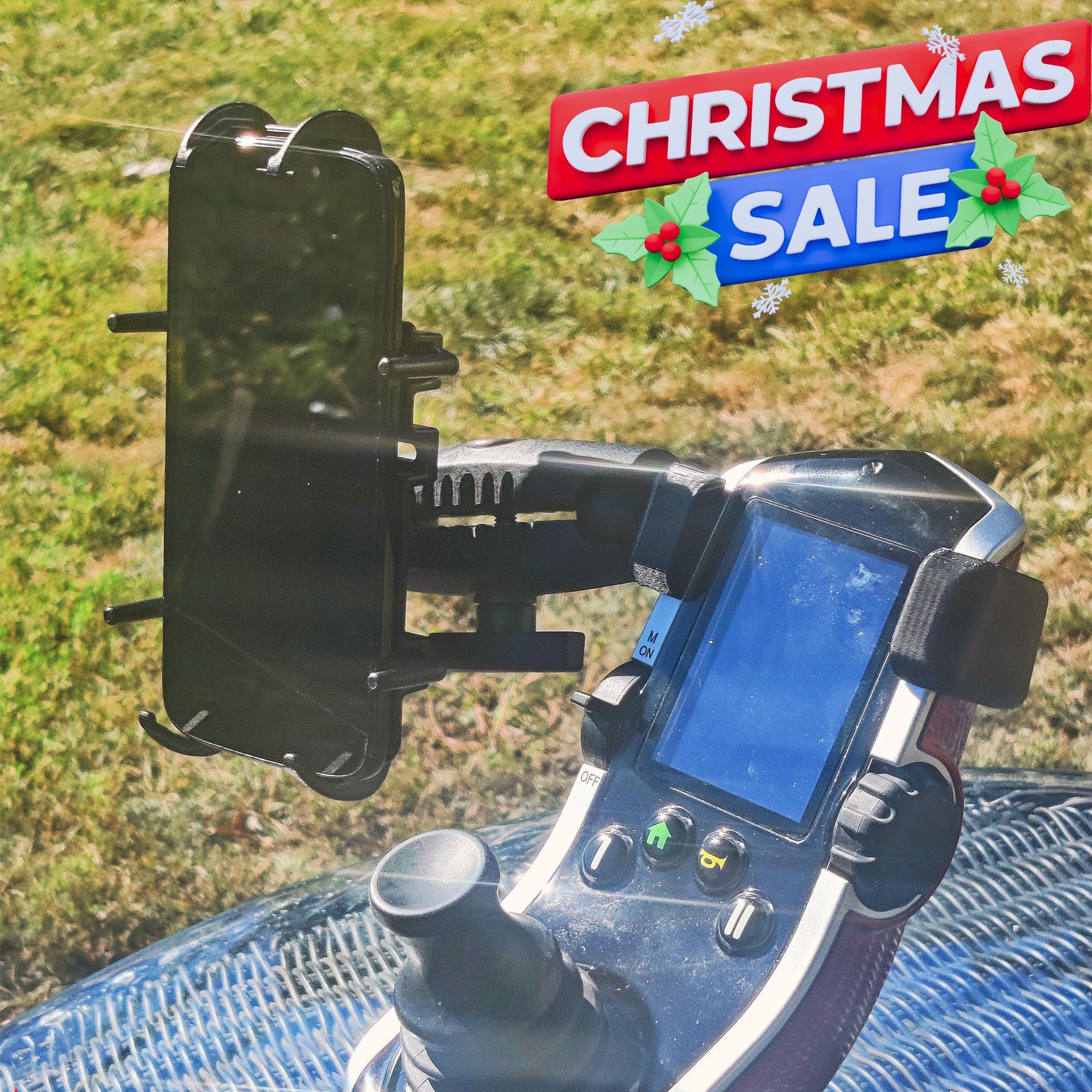 This 3D-printed adapter allows you to mount your phone onto your joystick. This mount option allows for a different phone placement location, unlike other wheelchair phone mounts.