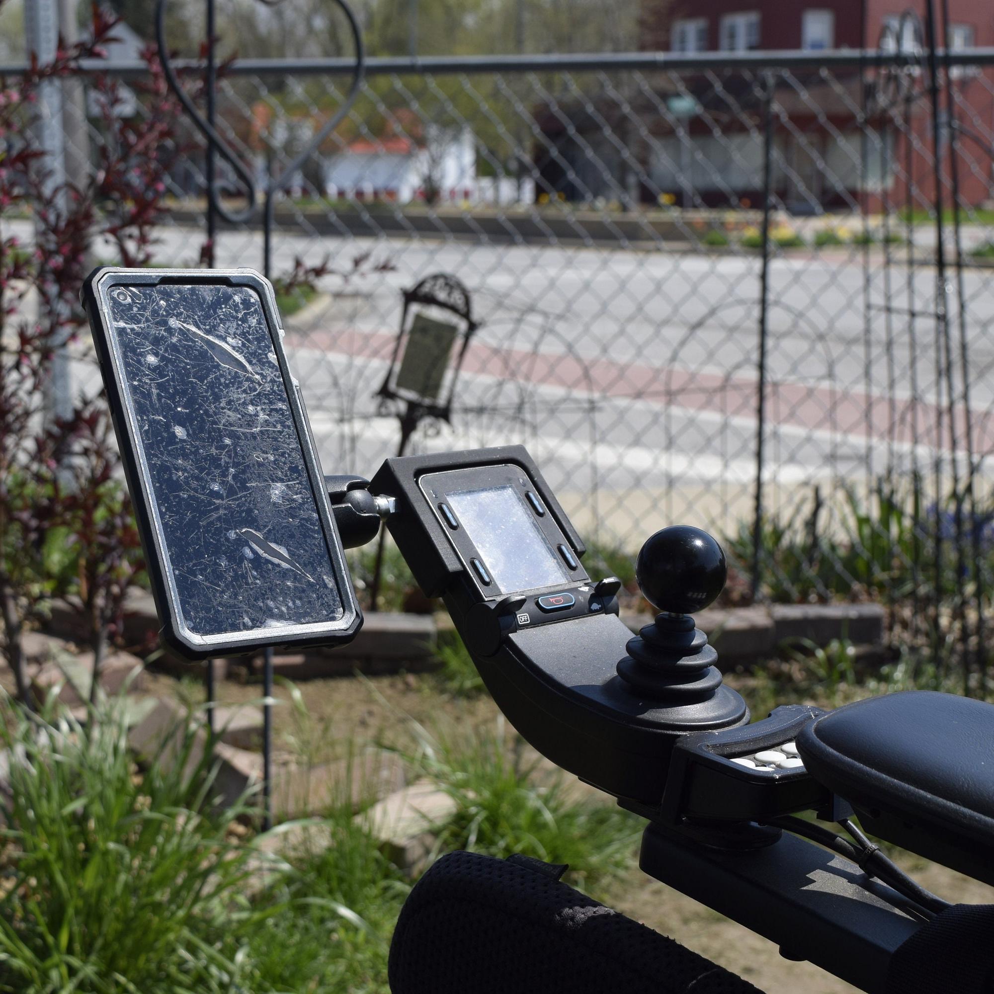 This 3D-printed adapter allows you to mount your phone or other similar small electronics using RAM equipment. This mount option allows for a different phone location, unlike other wheelchair phone mounts. A genuine 1" inch RAM ball mount will be preinstalled onto the 3D printed base so you can simply attach your RAM or other third-party arms.
